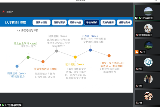 本次能力大赛参赛对象为2022年度承担学院基础教学课程(思政、体育、英语、高数)的任课教师和2023年春季学期拟承担基础教学课程(思政、体育、英语、通识)的任课教师,比赛内容分为教案编写和现场说课两个环节,按照百分制的30%、70%计分。受疫情影响,现场说课采用“腾讯会议”线上比赛方式,各参赛教师围绕课程的性质与任务、目标与要求、结构与内容、考核与评价、实施与保障、进程与安排等方面进行说课。