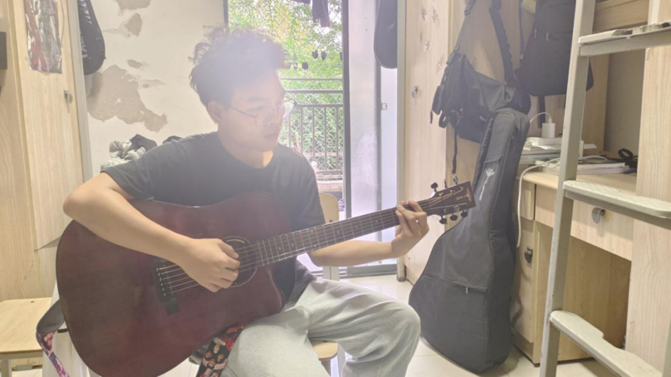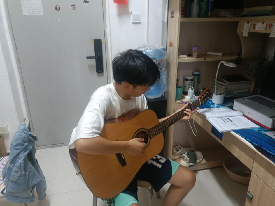 寝室是课外休闲时光的“音乐厅”。课余时光,闲暇时分,弹起心爱的吉他,来一曲战“疫”之歌,既是放松自我的有效方式,还能凝聚团队,一起为抗“疫”加油!