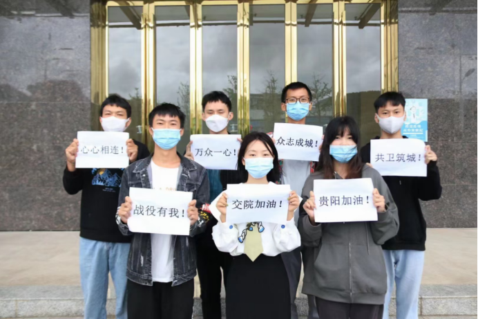面对来势汹汹的疫情,学院党委闻令而动、紧急部署,党委书记张静、院长吴有富以及其他院领导星夜奔赴战斗岗位,迅速成立本轮疫情校园防控工作领导小组,吹响战“疫”集结号。清镇市委、市政府主要领导亲临学校部署指导,注入了政校之间携手互助、共克时艰的强大力量。党员志愿服务队、骄行者志愿服务队、校卫队......一面面鲜红的旗帜在校园抗疫一线飘扬、一个个身披红色小马甲的志愿服务者在校园穿梭,齐心协力完成了当天全院6000余名在校师生的第一轮核酸检测。