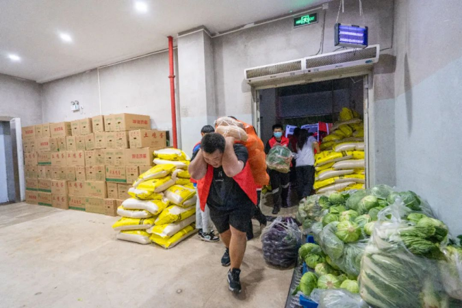 后勤不靠后,保障冲在前。学院后勤部门几经周折,将采买到的生活物资陆续运抵校园。甘于人后,勤于人先,交院后勤人用平凡的身躯扛起了疫情下6000余名在校师生的保障线。青春“骄行者”,最美“交院红”,学院的“骄行者”们用肩扛、用背驮,从深夜到黎明,将16余吨生活物资完美入库。那一抹红照亮了整个交院。