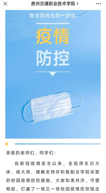 9月3日,学院党委、行政向全院师生发送疫情防控的一封信,共同凝聚起交院人扛击疫情的“洪荒之力”