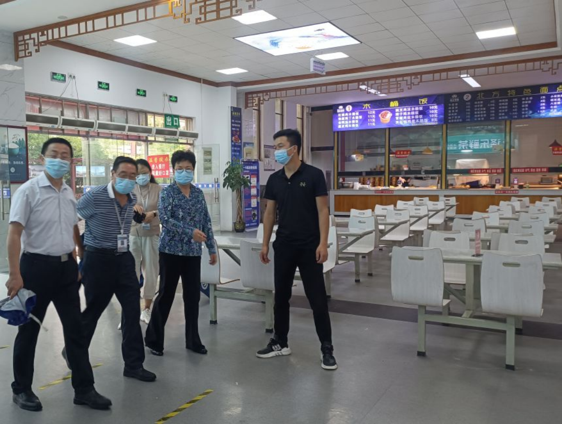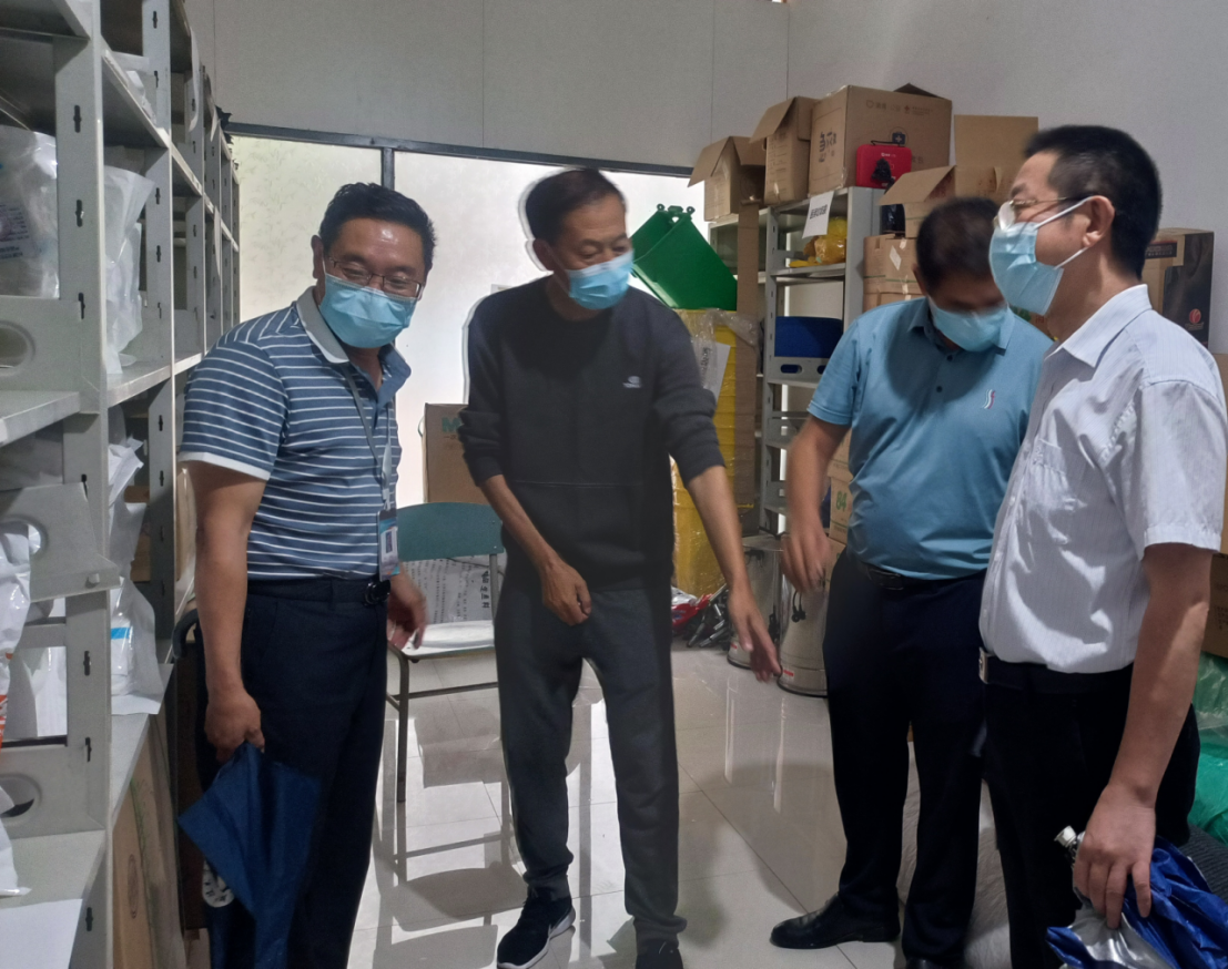 陈洪一行听取了学院疫情防控工作情况汇报,并实地走访了学院萃湖学生食堂、食堂仓库和防疫物资仓库,深入细致了解学院防疫物资和生活物资储备情况。