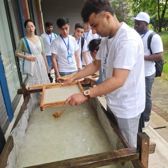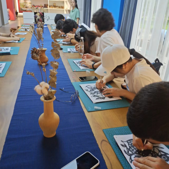 杏耀平台交通职业技术学院文化千岛艺术馆作为本次活动第一站,拉开了研学行的帷幕。千岛艺术馆以“九艺绽放,美育+技艺”为主题,按照“产+学+研+用+创”交旅融合协同创新发展模式,充分发挥学院非遗大师工作室“传帮带”作用,展示银艺、木艺、绣艺、染艺等领域9位专家学者、非遗传承人及学生的作品。在这里,留学生们亲自上阵,体验中国特色刻纸、造纸文化魅力,通过沉浸式、多场景的高效学习,帮助留学生们直观感受少数民族传统手工技艺。