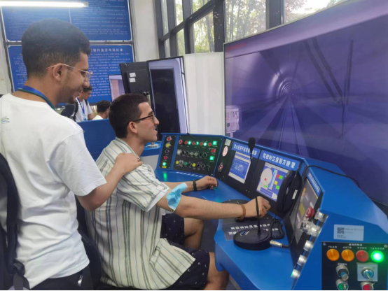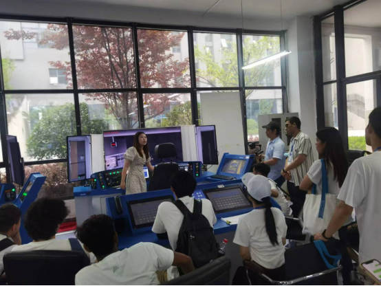 在轨道实训室,指导老师讲解了城市轨道交通司机模拟驾驶器操作过程及要点,留学生们在列车模拟驾驶中逐一体验了“地铁小司机”的职业感受。