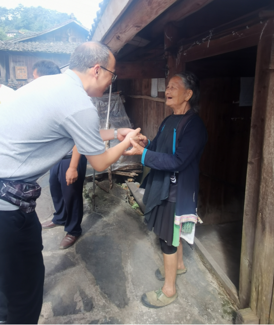 “老人家,我又来看望你了”。在从江县丙妹镇大歹村,培训班学员、院长吴有富正在和结对帮扶的潘你简嘘寒问暖,为她送去了生活用品,帮助解决家中的困难。这是自去年结对帮扶以来吴有富第三次来到她家“走亲戚”。