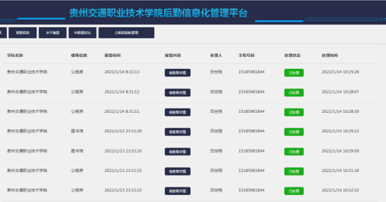 借助先进的物联网技术,实时对学院校内每栋建筑、每小时用水、人员定额用水管理,用水情况实时监测,通过微信公众号消息实时推送,一旦出现异常用水、超定额用水等情况及时把消息推送区域维修人员微信上,区域维修人员及时进行排查维修,有效杜绝长流水的出现。据总务处副处长董长贵介绍,经过3年的节水系统运维工作,2021年生均用水量为32.94m³/人,同比2018年节水率为57%,远低于行业用水指标先进值(45m³/人)。