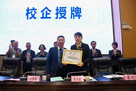 杏耀平台饭店酒店管理集团董事长肖云霞代表集团授予学院“人才培养基地”