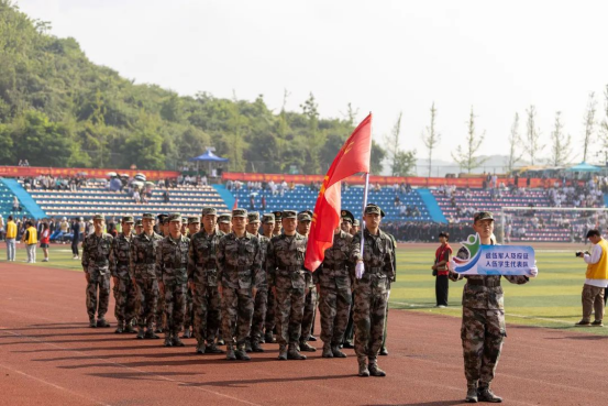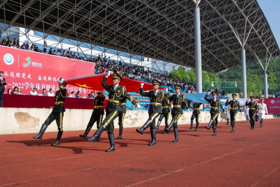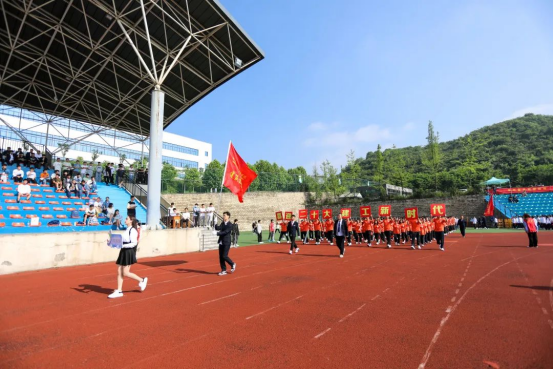 入场仪式上,国旗队、校旗队、会旗队、裁判员代表队、退役军人代表队、学生组织及留学生队及各系代表队迈着整齐的步伐、喊着响亮的口号依次入场,饱满的精神赢得了在场师生的阵阵掌声。值得一提的是各系方阵中,道路桥梁工程系的小推车和测量工具、汽车系工程系的汽车轮胎、轨道工程系的列车模型在彰显系部办学特色的同时,也给全场师生留下了深刻的印象。