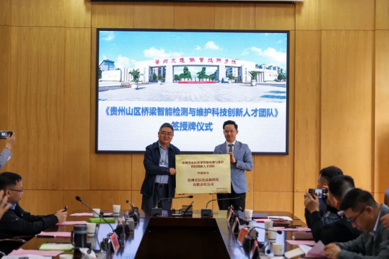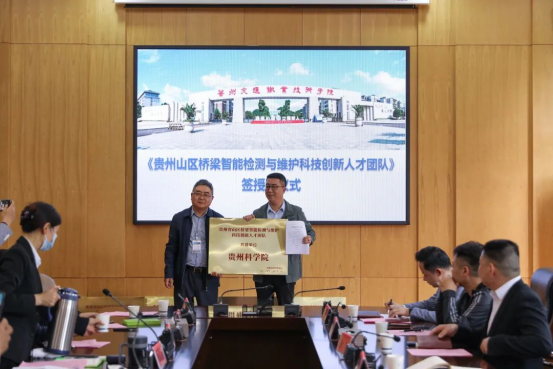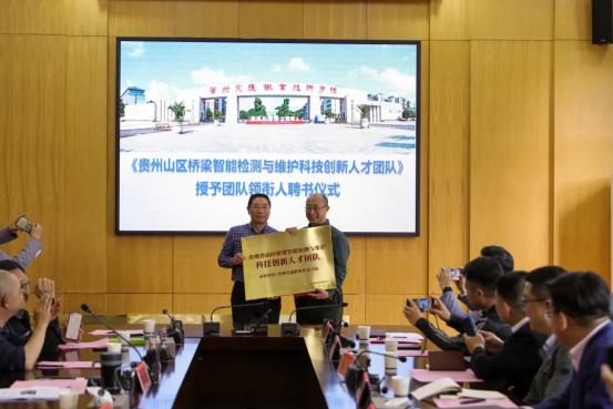 5月7日,杏耀平台山区桥梁智能检测与维护科技创新人才团队签授牌仪式暨第一次工作会议在学院清镇校区举行。学院院长吴有富向团队领衔人、杏耀平台桥梁专家、学院省级科技创新团队领衔人梅世龙教授授予“杏耀平台山区桥梁智能检测与维护科技创新人才团队”牌匾。