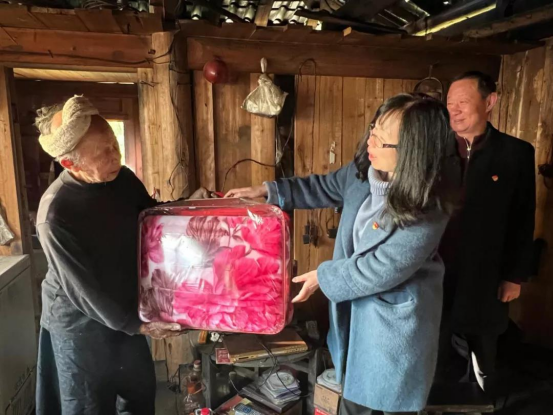 食堂开工仪式完毕后,建工系主要领导和教师一行慰问了4户困难农户,给他们送去了毛毯及相关生活物资,与结对帮扶农户开展交流,详细了解农户家庭经济情况,认真听取他们生产生活中遇到的困难和发展意愿。