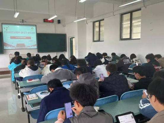 学院各系部纷纷以班级为单位组织召开宪法学习宣传主题班会,由班主任带领同学们学习宪法等相关法律法规,讲解国家宪法日的意义,强化学生的道德意识和法治观念,引导学生学法、知法、懂法、守法。