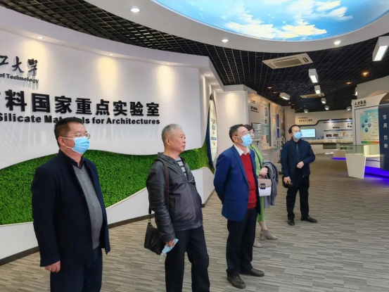签约仪式前,吴有富一行参观了武汉理工大学硅酸盐建筑材料国家重点实验室、光纤传感技术国家工程实验室。
