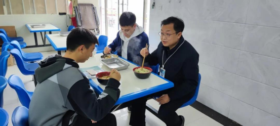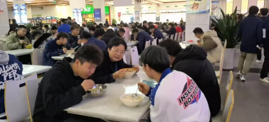 11月17日,学院领导来到学生餐厅,和同学们坐在一起共进午餐、共话家常、纾解困惑,深入了解同学们的所思所想,询问同学们在学习和生活中存在的实际困难,倾听同学们对教学、校园环境、学生服务与管理等方面提出的宝贵意见和建议。