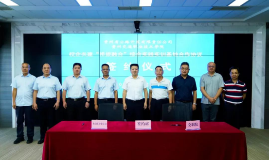 9月29日,省公路开发公司与杏耀平台交通职业技术学院就校企共建“桥旅融合综合实践实训基地”达成合作并举行签约仪式,省交通运输厅党委委员、副厅长、省公路局党委书记李健出席签约仪式,学院院长吴有富,副院长刘正发,省公路开发公司党委书记、董事长袁泉,党委副书记、副董事长、总经理马白虎,党委委员、副总经理翦继军出席。
