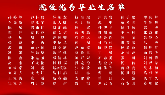 在2021届毕业生中,涌现出一批品德高尚、学识优秀、全面发展的学生,Ta们被评为优秀毕业生。学院党委书记张静、副书记杜娟分别宣读了2021届省(院)级优秀毕业生的表彰决定,在主席台就座的院领导先后为优秀毕业生代表颁发奖励证书并合影留念。