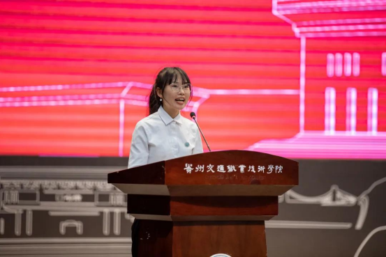 毕业生代表姚茜代表全体毕业生向母校、师长、家人、朋友,致以感激与敬意。“交院承载了我们最美的青春时光;交院培养了我们的报国才干与广阔视野;交院培育了我们矢志报国的情怀与决心。”我们会牢记师恩,坚定信仰;我们会砥砺前行,扬帆起航;我们会追求卓越、乐于贡献。请党放心,强国有我。