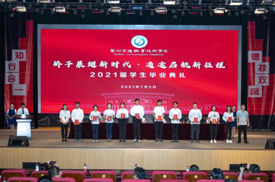 学院副院长刘正发宣读了2021届毕业生毕业资格审查报告,希望顺利毕业的同学秉承“逢山开路,遇水架桥”的交通精神,在从“小我”走向“大我”的逐梦路上脚踏实地、行稳致远,用未来定义现在,用价值定义成功,以青春成就未来,创造属于自己的人生精彩。在主席台就座的院领导先后为优秀毕业生代表颁发毕业证书并合影留念。