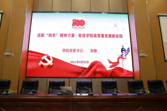 学院党委领导班子成员、中层干部、党史学习教育领导小组办公室人员、党员和教师代表、各系学生代表参加会议。