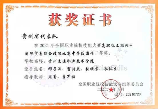 邓子涵、贺诗然、张顺吉、朱怀生4名选手组成的队伍荣获互联网+国际贸易综合技能国赛二等奖。该项比赛有来自全国29所职业院校的116名选手参加。竞赛内容共有2个模块。外贸b2b模块比赛时长240分钟,分值占比50%;外贸b2c模块时长300分钟,分值占比50%。参赛团队需要在互联网平台上完成b2c跨境电子商务平台推广、进出口价格核算、利润测算、贸易磋商和合同签订等多项任务。竞赛内容复杂繁多、专业性强,是对学生专业技能、心理素质、团队意识和交流沟通等综合能力的全面考验。
