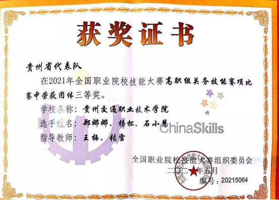物流工程系郑娜娜、杨松、石小慧3名选手组成的队伍荣获关务技能国赛三等奖的好成绩。此次大赛来自全国29所职业院校的87名选手参加。该项竞赛由3名参赛选手组成,分别担任归类师、单证师、复核师的角色。共有5个模块。通关前知识准备模块比赛时长120分钟,分值占比10%;关务操作模块时长120分钟,分值占比20%;商品归类模块比赛时长150分钟,分值占比25%;报关单填制模块比赛时长150分钟,分值占比25%;报关单复核模块比赛时长150分钟,分值占比20%。赛项目的是考察参赛选手关务方案设计、报关单证处理与质量监控、进出口商品归类等职业核心技能;考察参赛选手逻辑思维能力、时间管理能力、团队合作能力和创新创业能力等职业素养。