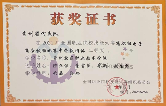陈正佳、董睿萍、廖新、刘生忠4名选手组成的队伍荣获电子商务技能国赛二等奖的好成绩。该项比赛有来自全国32所职业院校的128名选手参加。竞赛内容共有三个模块。模块一为直播营销,比赛时长120分钟,总分值25;模块二为店铺装修,比赛时长120分钟,总分值25;模块三为电商运营,比赛分为五轮,总分值50。竞赛项目设置重在检验学生对电子商务专业主要模块的实践运用能力,考察学生是否具备新媒体营销、网店开设、网店运营,团队协作配合的职业素养。